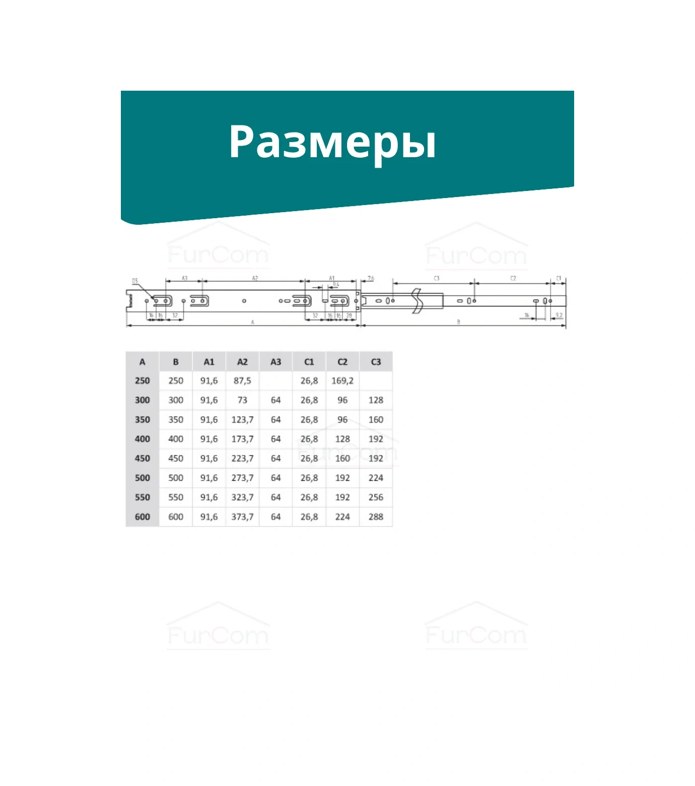 Furcom 350 Mm H35 Çekmece Rulmanlı Rayları 108688793 Diğer