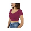 Fuşya Havuz Yaka Fitted/vücuda Oturan Kısa Kol Crop Tişört Fuşya