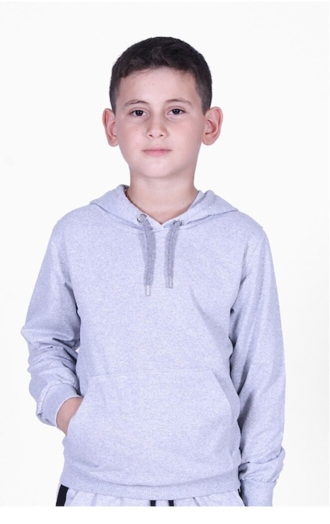 Fyk Kids Düz Kanguru Cepli Kapşonlu Sweatshirt Gri