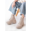 Fz-2550 Bej Yüksek Tabanlı Bağcıklı Fermuarlı Günlük Kadın Bot Bej
