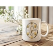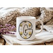 G Harfi Arı Desenli Kupa - Sevimli Hayvan Temalı Kişiye Özel Kahve Kupası - Şans Kupası Beyaz