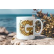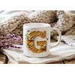 G Harfi Bal Arısı Tasarım Kupa Bardak - Bal Ve Petek Desenli Kişiye Özel Kahve Kupası - Hediyelik Beyaz