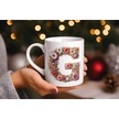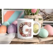 G Harfi Çiçek Desenli Kupa Bardak - Alfabe Harfleri İle Doğal Çiçekli Kupa - Hediye Fikir Beyaz