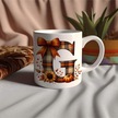 G Harfi Ekose Ve Sonbahar Temalı Kupa Bardak - Kişiye Özel Sıcak Tonlar Alfabe Kupa - Hediye Beyaz