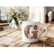 G Harfi Yılbaşı Temalı Kupa Bardak - Yeni Yıl Konsept Yamalı Efekt Tasarım - Noel Hediye Beyaz