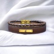 Ğ Harfine Özel 14 Ayar Altın Plakalı Kahverengi Derili Dikdörtgen Figürlü Hediye Bileklik-531harf Ğ