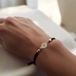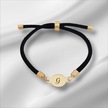 G Harfine Özel 14 Ayar Altın Plakalı Oval Motifli İpek Örgülü Hediye Bileklik-320harf-siyah Altın
