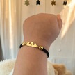 G Harfine Özel Taç Figürlü 14 Ayar Altın Plakalı Siyah İpek Örgülü Hediye Bileklik-507harf G