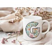 G Harfli Pastel Çiçek Desenli Kahve Kupası - Kişiye Özel Çiçekler Koleksiyonu Bardak - Hediye Beyaz