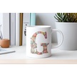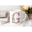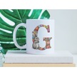 G Harfli Tavşan Kupa - Patchwork / Yamalı Desenli İsme Özel Kupa - Pastel Vintage Tarz Hediyelik Beyaz