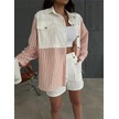 Gabardin Şort - Gabardin - Çizgili Keten Garnili Ceket Takım - Orange Orange