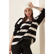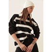 Gabria Fermuarlı Çizgili Kazak Siyah