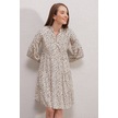 Gabria Kadın Gabria Desen Yarım Düğmeli Kısa Elbise Bej