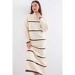 Gabria Kalın Çizgili Triko Elbise Bej