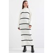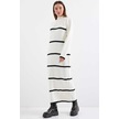 Gabria Kalın Çizgili Triko Elbise Ekru