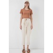 Gabria Kemerli Duble Paça Keten Pantolon Krem
