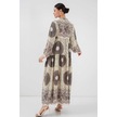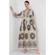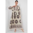 Gabria Ön Düğmeli Desenli Viskon Elbise Bej - Kahverengi