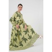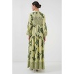 Gabria Ön Düğmeli Desenli Viskon Elbise Fıstık Yeşili