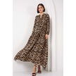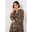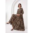 Gabria Ön Düğmeli Desenli Viskon Elbise Leopar