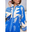 Gabria Ön Düğmeli Desenli Viskon Elbise Saks