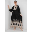 Gabria Ön Düğmeli Desenli Viskon Elbise Siyah - Taş