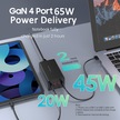 Gajeena 65w Gan Hızlı Şarj İstasyonu - 4 Portlu 2xusb-c + 2xusb-a - Pd3.0 Destekli - Seyahat Ve Çoklu Cihaz Şarjı İçin