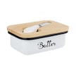 Gajeena Bambu Kapaklı Beyaz Metal Tereyağı Saklama Kutusu Ve Bıçak Seti Beyaz