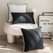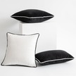 Gajeena Siyah Beyaz Kenarli Kadife Telli Modern Minimalist Yastik Kılıfı - 45x45cm Yastiksiz, Ev Dekoru Icin Konforlu Omuzluk Siyah Beyaz