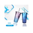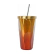 Gajeena Stahl Çift Katlı Isı Saklama Bardak, İki Renkli Desen, Pipetli, 500ml Kapasite, Gümüş Sarı Mavi Mor Turuncu Siyah Seçenekleri