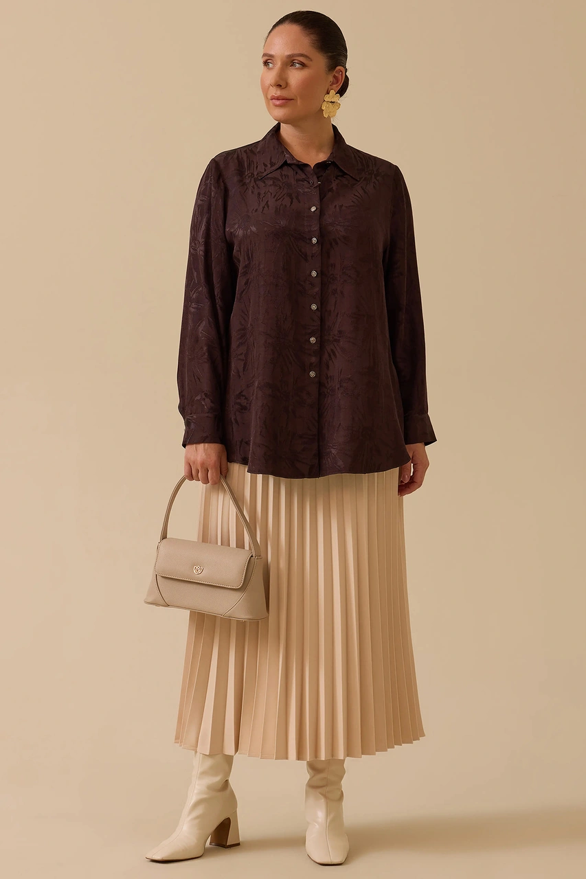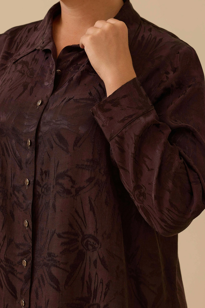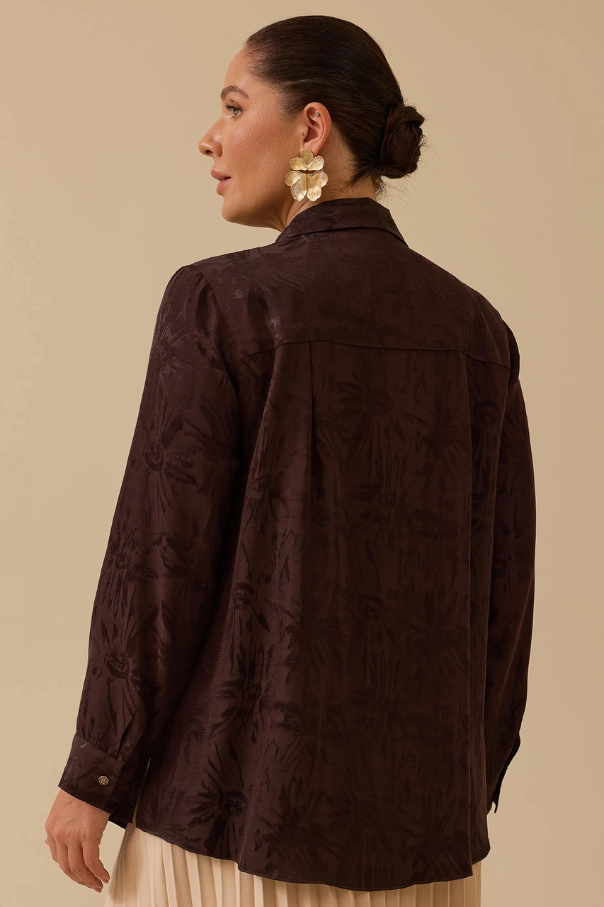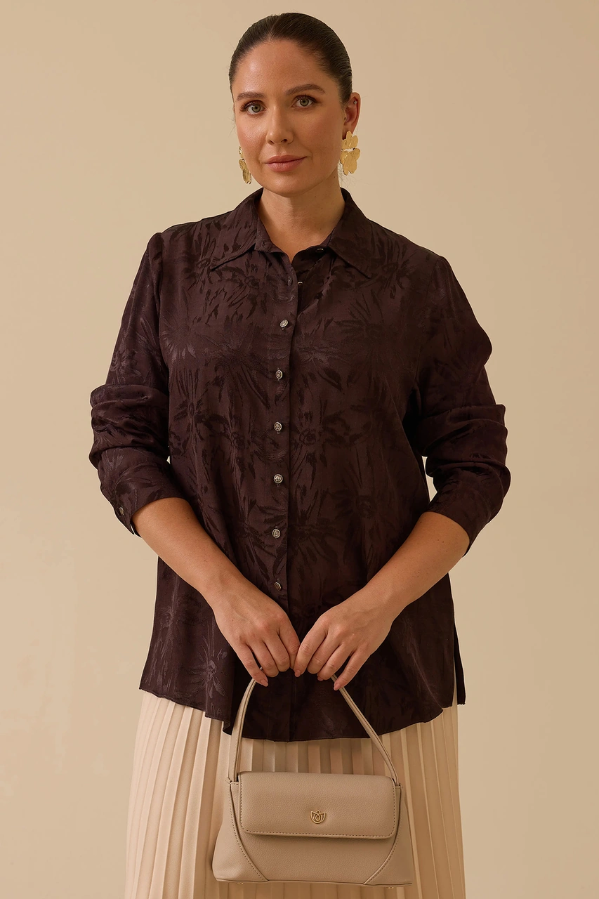 Galaxi Kadın Büyük Beden Çiçek Desenli Jakar Gömlek 4018 Kahverengi Kahverengi