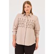 Galaxi Kadın Büyük Beden Çizgili Boncuk Detaylı Gömlek 4008 Vizon Vizon
