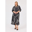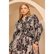 Galaxi Kadın Büyük Beden Desenli Cep Detaylı Elbise 4015 Siyah Siyah