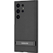 Galaxy Uyumlu S24 Ultra Kılıf Kamera Korumalı Karbon Tasarım Droga Standlı Kartlıklı Kapaklı Kılıf-siy