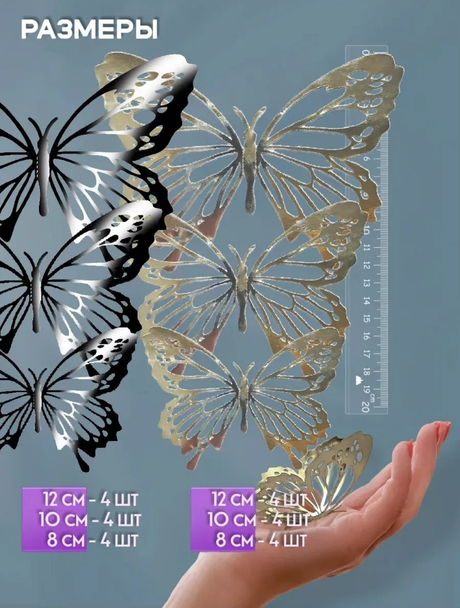 Galerea Prazdnıka Dekorasyon Ve Süsleme İçin 3d Kelebek Çıkartmaları 339602045 Gümüş