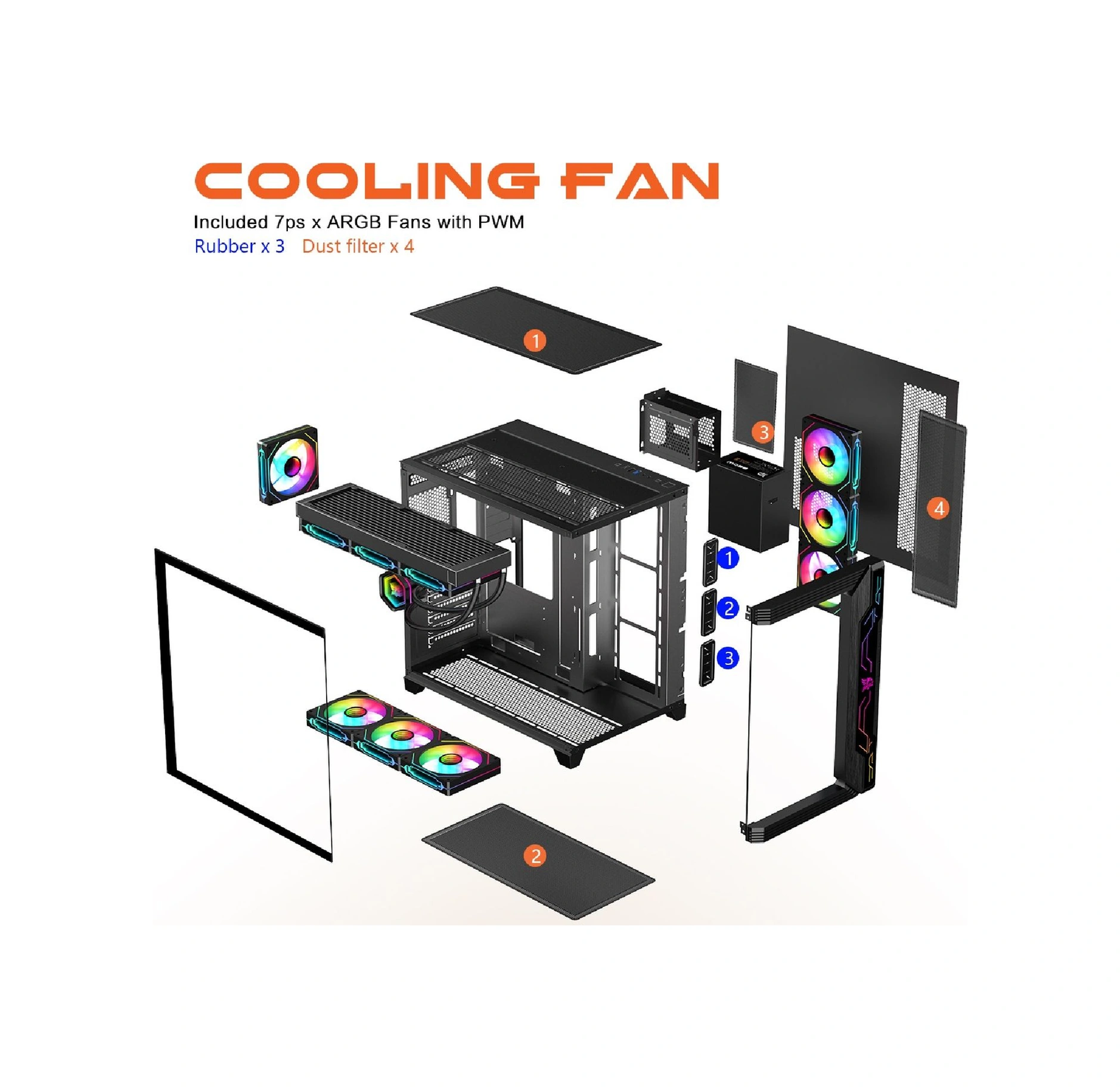 F7 Lite 7x Argb Fanlı Uzaktan Kumandalı Gaming Akvaryum Kasa