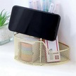 Ganzhoushop Zarif Örgü Kalemlik Üçgen Şekilli Metal Kırtasiye Depolama Tutucu 3 Bölmeli Masaüstü Offlight Altın