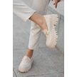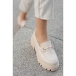 Garantili D124 Kadın Kalın Taban Zincirli Loafer Günlük Ayakkabı Bej