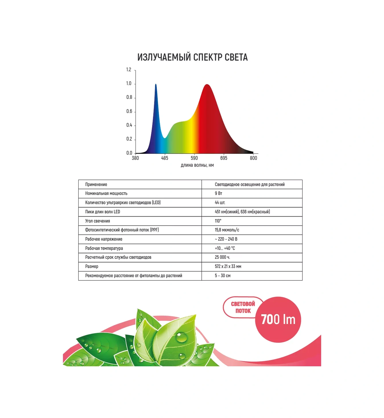 Garden Show Bitki Işığı, Tam Spektrumlu Lineer, 9w 53568599 Beyaz