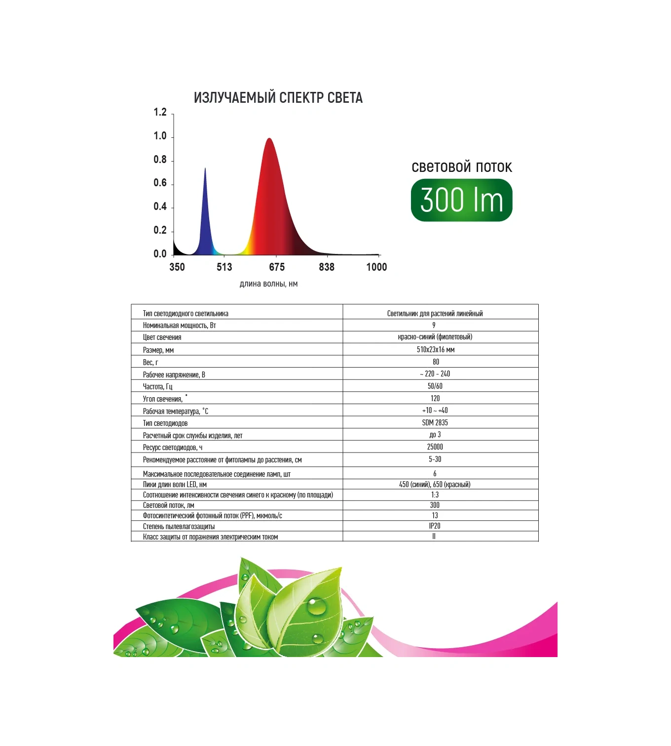 Garden Show Lineer Lamba, 9 W, L510mm, Kırmızı-mavi Spektrum 311623383 Beyaz
