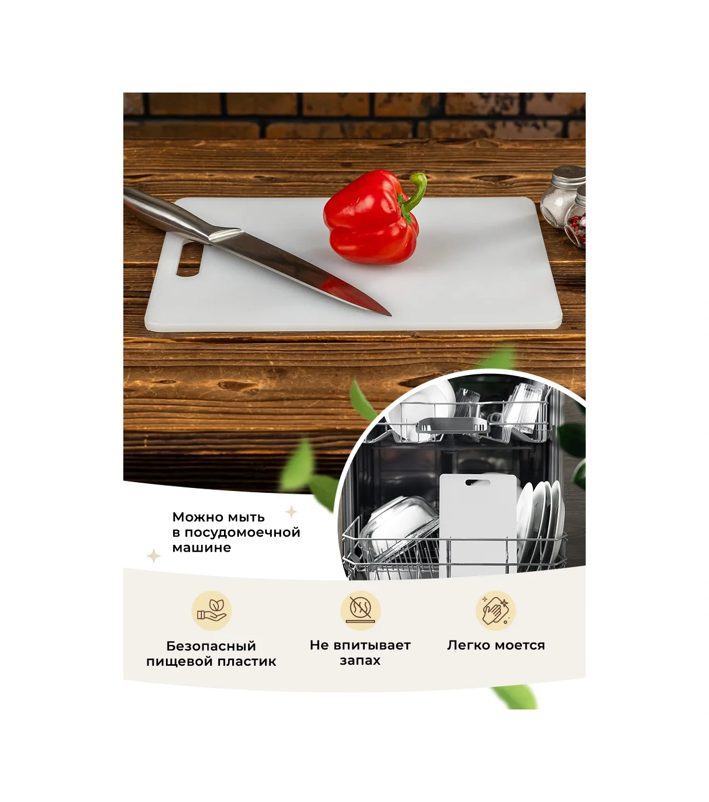 Gastrorag Mutfak İçin Plastik Kesme Tahtası, Kulplu 181949748 Beyaz