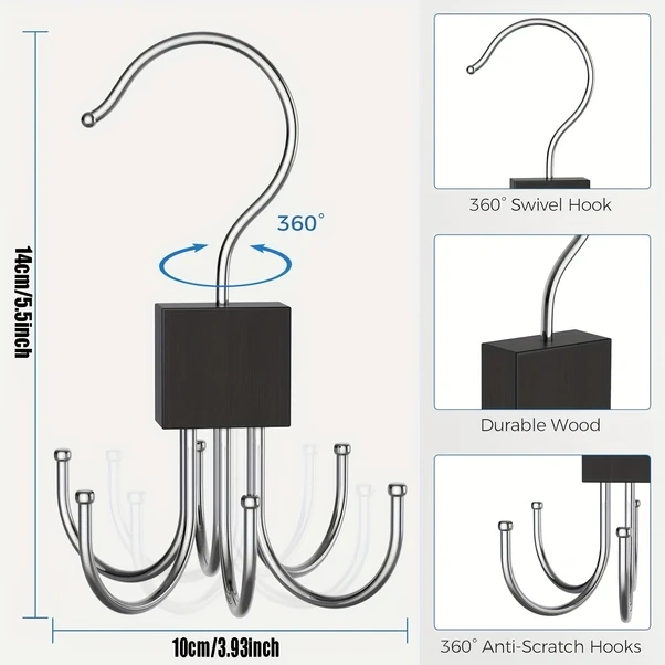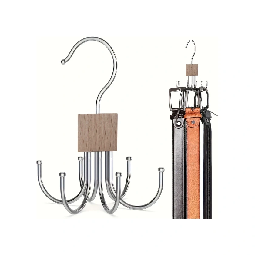 Gateesat 1 Adet Döner Kancalı Ahşap Askılık - Kemer, Sütyen, Kravat, Fular Organizatörü Ahşap