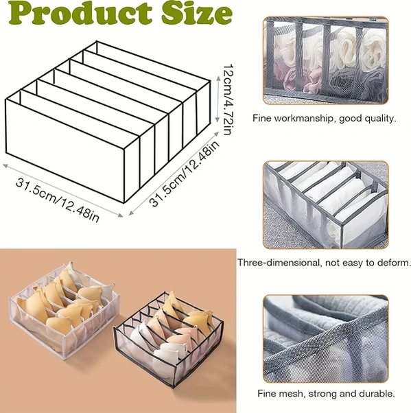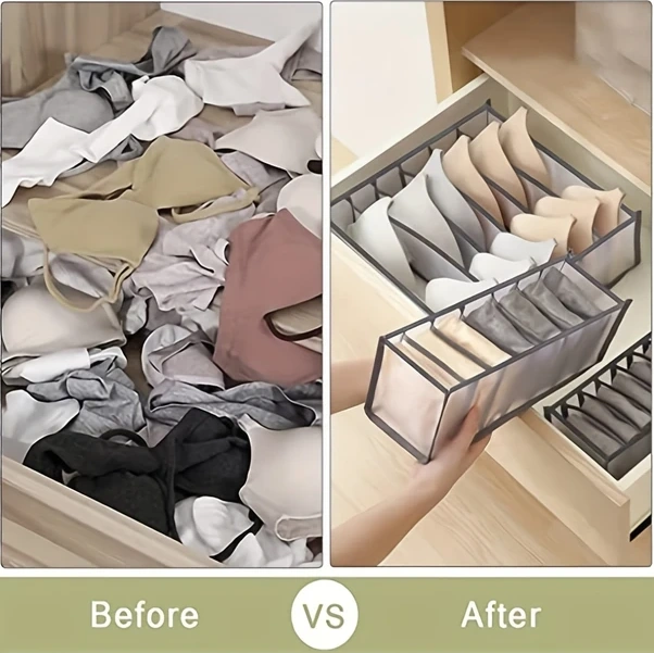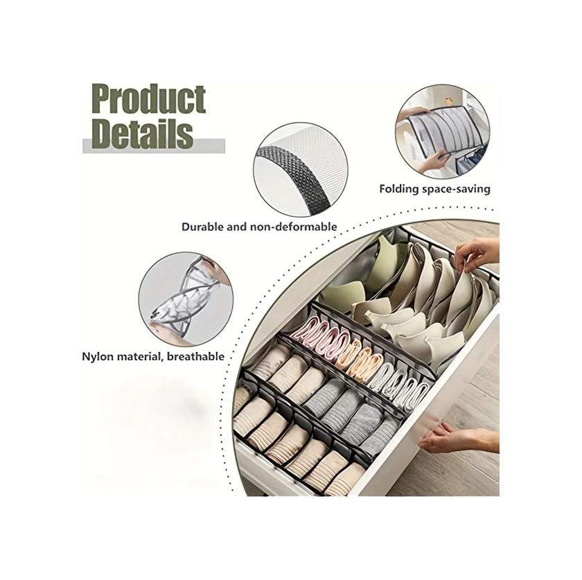 Gateesat 1 Adet Gri 6 Bölmeli Katlanır İç Çamaşırı Çekmece Düzenleyici Gri