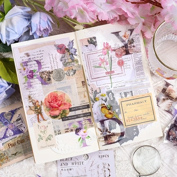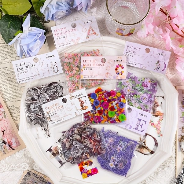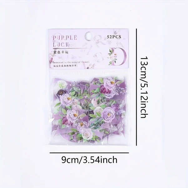 Gateesat Ddhlklb1 52 Parça Su Geçirmez Pet Çiçek Çıkartmaları, Günlük Ve Dekorasyon İçin Renkli Retro Stiker