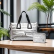 Gateesat Silvery Two Piece Set 2 Parça Büyük Kapasiteli Sportör Çapraz Body Fitness Çanta Gümüş İki Parça Takım Elbise