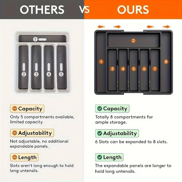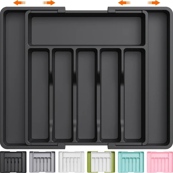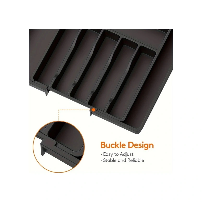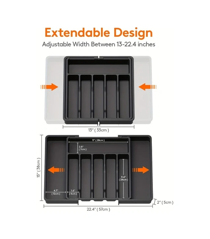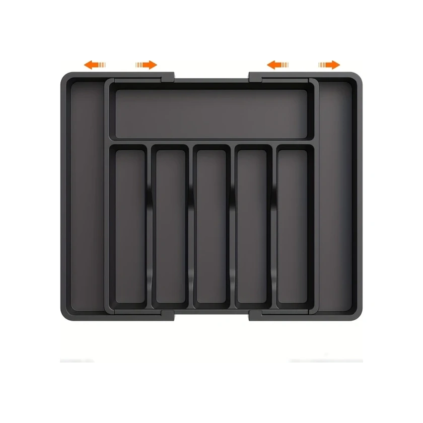 Gateesat Siyah 8 Bölmeli Genişletilebilir Mutfak Çekmece İçi Organizer Tablası, Pratik Saklama Çözümü Siyah