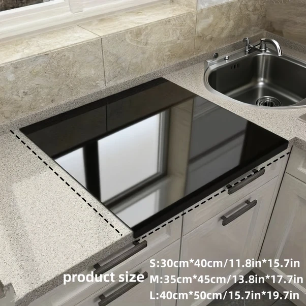 Gateesat Siyah Büyük Boy Akrilik Kesme Tahtası, Kaymaz Ve Kolay Temizlik Siyah
