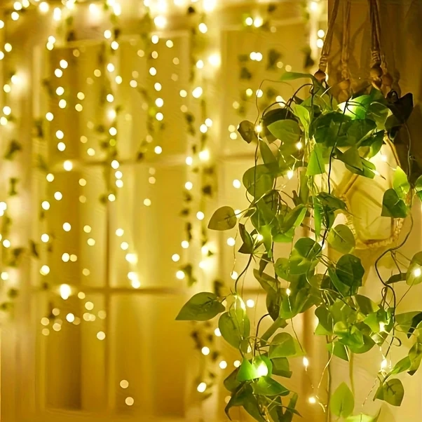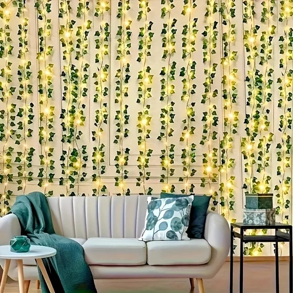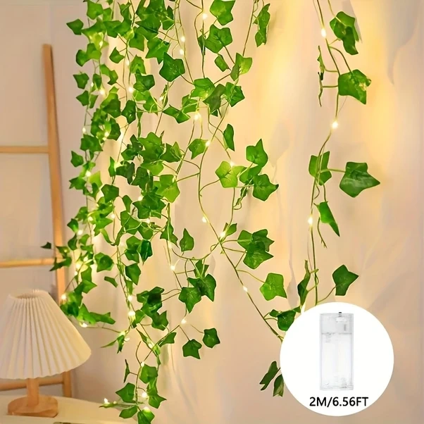 Gateesat Yeşil Yapraklar Sıcak 78.74 İnç Yapay Sarmaşık Işık Şeridi Pil İle İç Ve Dış Mekan Dekorasyon