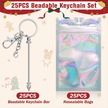 Gatherco 25 Parça Boncuklu Anahtarlık Bar Seti, Kendin Yap İçin Yeniden Kapatılabilir Hediye Çantasıyla Birlikte Gümüş Boncuklu Anahtarlık, Kolye Anahtarlık Yapımı İçin