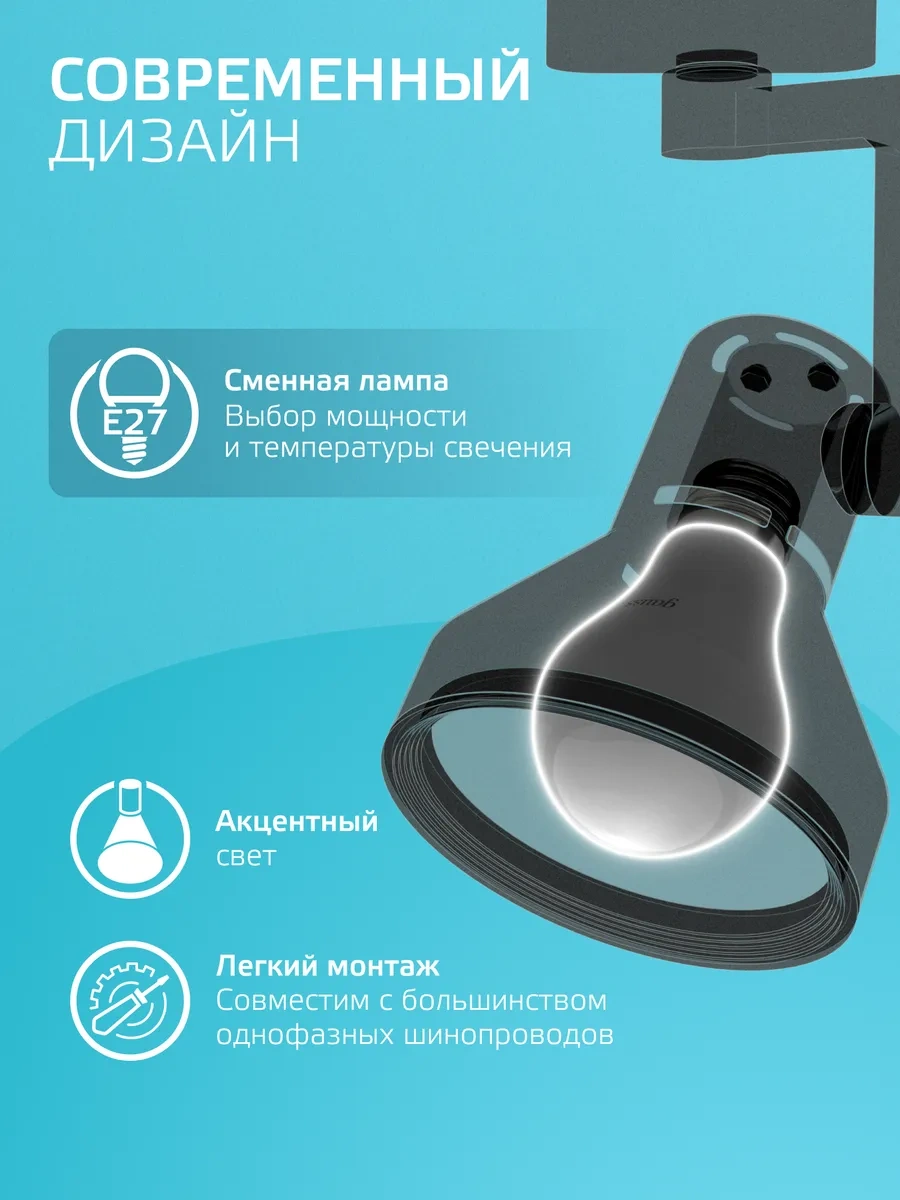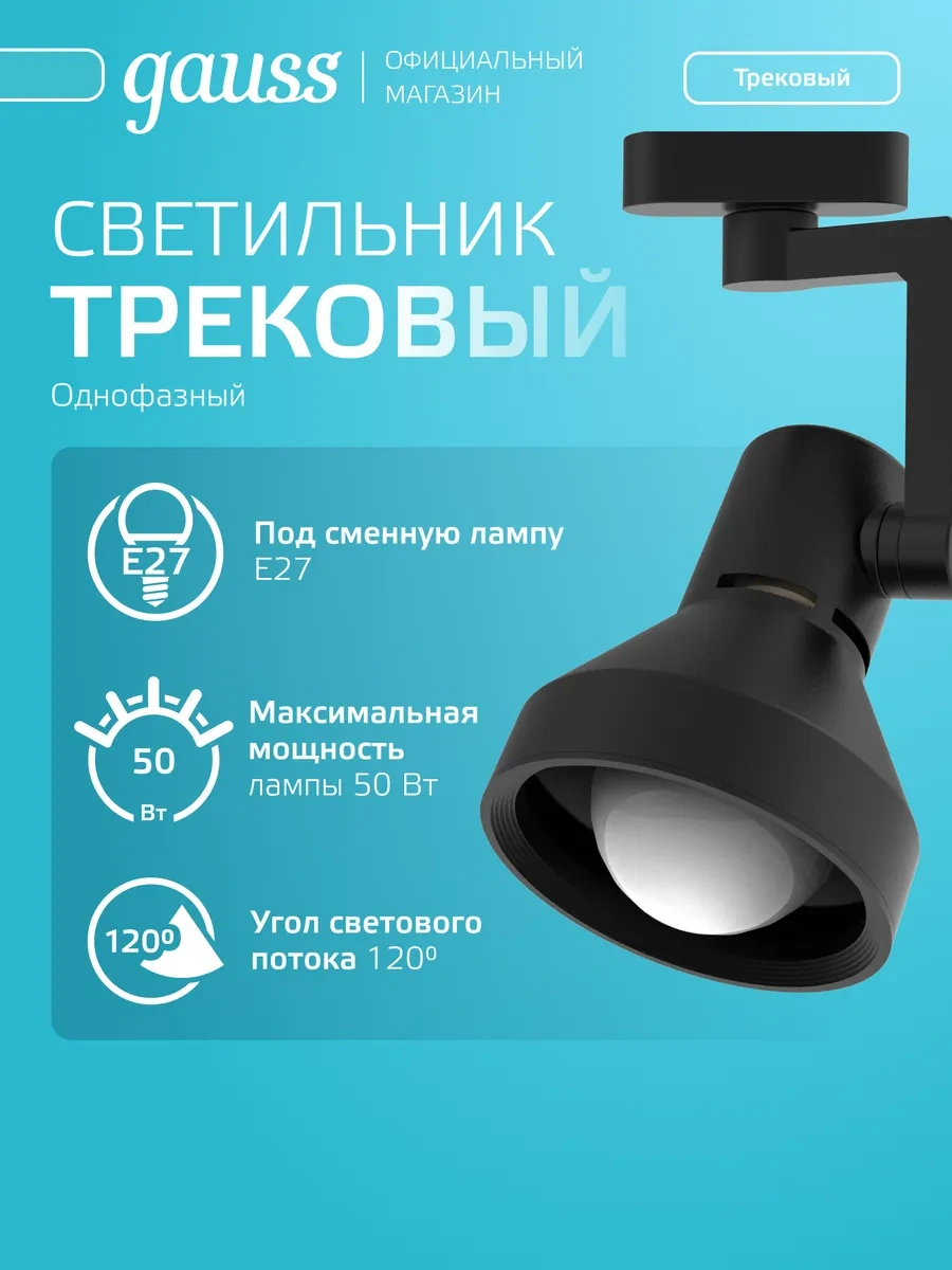 Gauss E27 Ampul İçin Siyah Tavan Raylı Armatür 276148812 Siyah