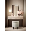 Gazzini Furniture Diana Slim Line Luxury Havlu Kumaş Silindir Dekoratif Makyaj Masası Puf Beyaz